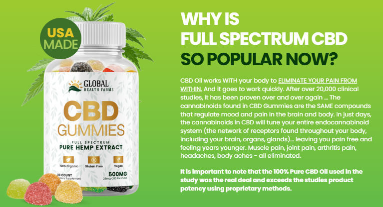 Global Health Farms CBD Gummies feature a clean, science-backed formula, per web sources and Healthline: